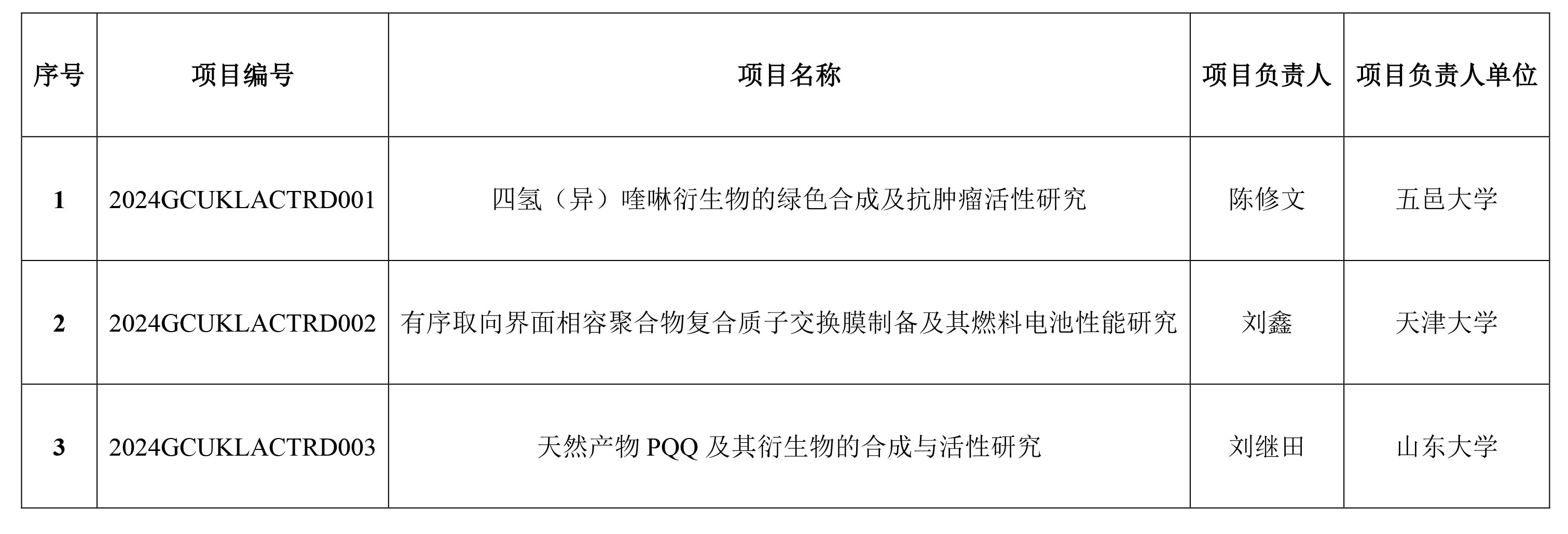 【平台】广西高校应用化学技术与资源开发重点实验室2024年开放基金资助名单