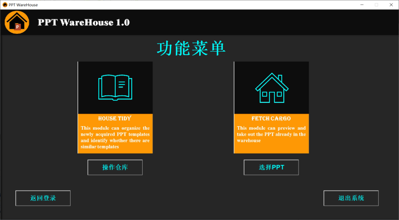 图2 PPTWareHouse软件功能菜单界面