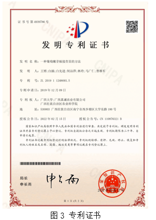 一种葡萄嫩芽嫁接育苗的方法,为太阳集团城网站2017与广西农业科学院、广西真诚农业有限公司联合研发的南方葡萄苗木快速繁殖专利技术。