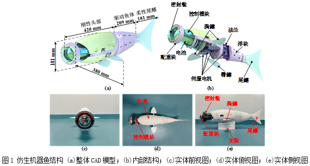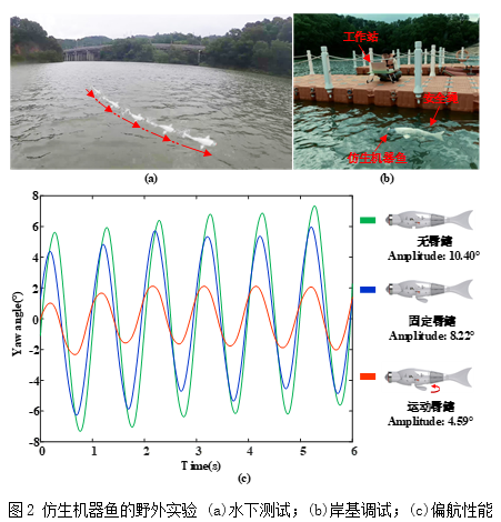 仿生机器鱼作为一种参照鱼类生物特征进行设计的先进水下机器人,具有能耗低、效率高、机动性强、隐蔽性好等显著优势,受到了海洋科考、石油开采、资源勘探、水产养殖等诸多领域的广泛关注。然而,仿生机器鱼的研发需要综合机械学、生物学、水力学、电子学、计算机、控制工程等多学科原理,目前在高稳定巡航方面的性能仍亟待提升。因此,太阳集团城网站2017联合中国科学院深圳先进技术研究院团队共同开发了仿生机器鱼多鳍协调的高稳定巡航技术。采用基于中枢模式发生器(CPG)的控制手段,利用刚柔耦合多鱼鳍的协调原理建立了胸鳍-臀鳍-尾鳍的运动控制理论,厘清了刚柔耦合比、鱼体刚度、拍动频率、拍打幅度等仿生学特征对巡游性能的影响规律,实现了仿生机器鱼的高稳定巡航运动。