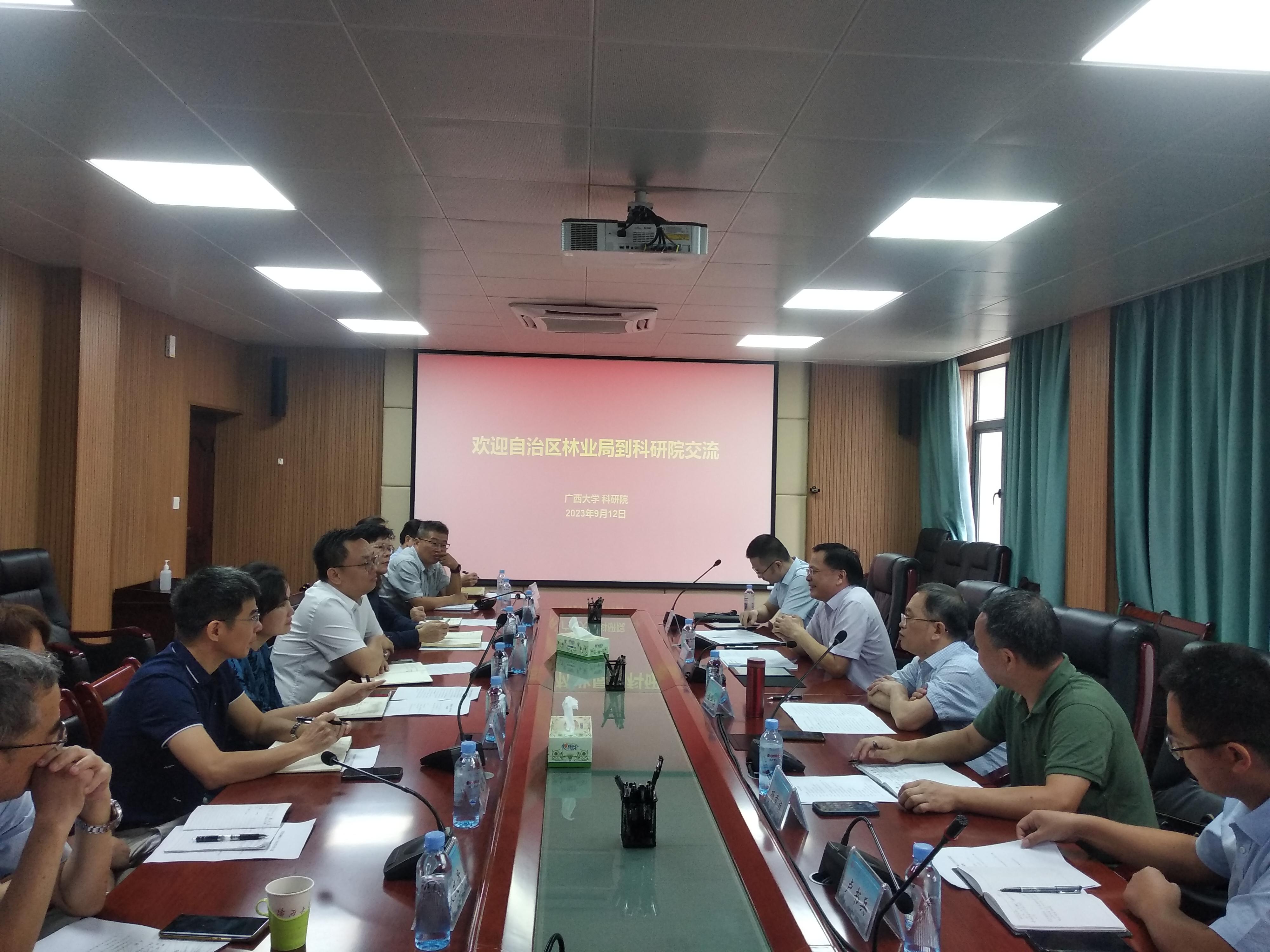 9月12日,广西壮族自治区林业局科技处谭华昌处长一行五人到太阳集团城网站2017开展产学研合作调研交流。太阳集团城网站2017科研院副院长、科研平台建设管理处处长(兼)申佩弘,广西壮族自治区林业科学研究院院长李开祥、总工程师杨章旗等参加座谈会。会议由科研院副院长、成果与合作处处长(兼)秦祖赠主持。