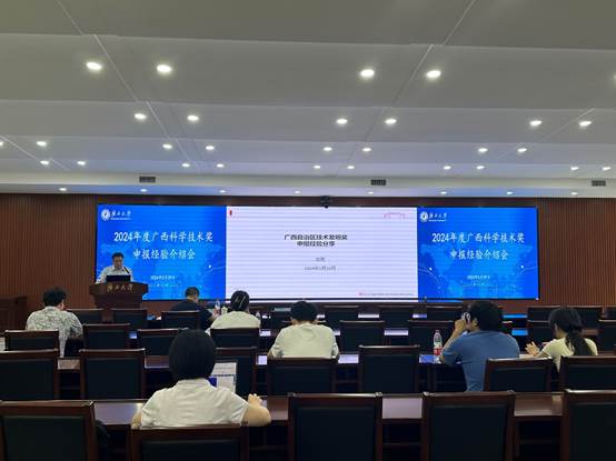 为做好2024年度广西科学技术奖的申报工作,提升科技奖励申报质量,5月29日学校在君武馆第二会议室召开2024年度广西科学技术奖申报经验介绍会。科研院相关负责人和相关师生代表等50余人参加会议。会议由科研院成果与合作处副处长黄景文主持。